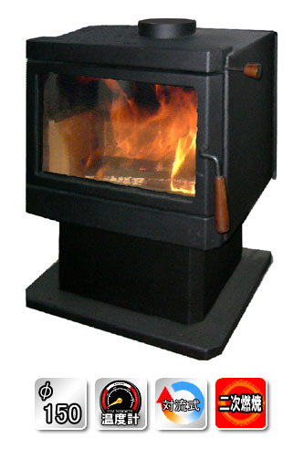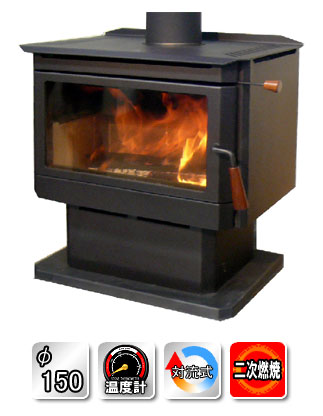 パノラマウィンドウで望む大迫力の炎、無駄のない燃焼と熱対流、鋼板製薪ストーブの傑作が新登場。  【商品仕様】 本体サイズ (約)W585xD465xH690mm 重 量 (約)110kg 煙突径 φ150 煙突位置 上部 最大薪長さ (約)450mm 最大熱出力 (約)10,000kcal 暖房面積 (約)40?50坪 燃焼方式 二次燃焼式、輻射式、対流式 付属品 ストーブ温度計 製造国 中国(ホンマ製作所の企画設計) 発送の目安 即日発送 煙突・部品 煙突支持金具 壁面取付金具 ※ご注意: こちらの薪ストーブは重量が100kgを超える機種が御座います。 配達時の荷降しは配達員(1名)のみでは
